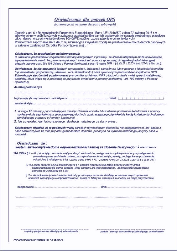 Oferujemy dla ośrodków pomocy społecznej druki wywiadów, oświadczeń, wniosków zgodne z aktualnym stanem prawnym i rozporządzeniem Ministerstwa Rodziny i Polityki Społecznej z dnia. 14.05.2021 r. poz. 893.